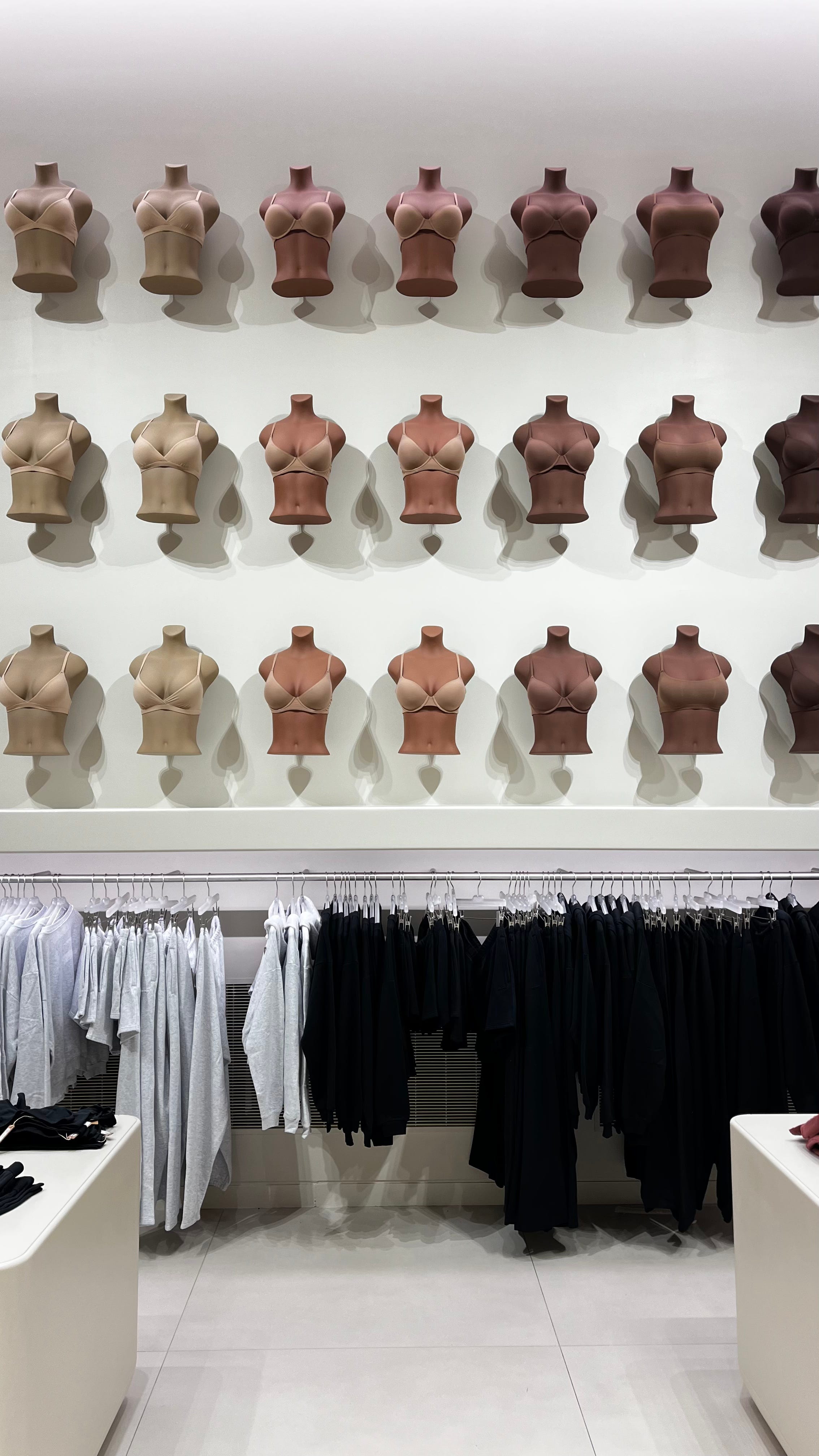 C’est d’autant plus dommage que Skims incarne une vision forte et nécessaire de la lingerie : inclusive, décomplexée, pensée pour toutes les morphologies. Le choix des couleurs, parfaitement adapté à une grande diversité de carnations, et le sizing étendu sont une véritable réussite. Le bodypositivisme est au cœur du projet — et il se ressent dans les produits, mais pas encore dans l’expérience en magasin.